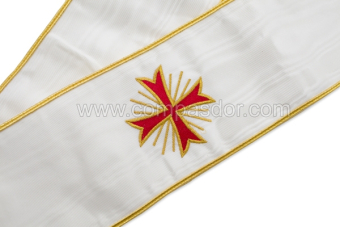 Baudrier - cordon blanc, soutache or et croix Templière brodée