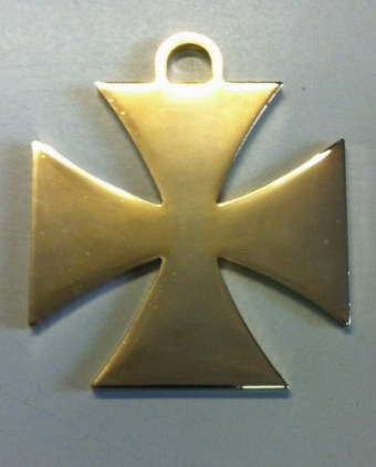 Croix Templière, simple, en métal, dorée, largeur 6 cm x hauteur 6 cm. Epaisseur 4 mm.