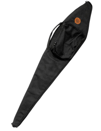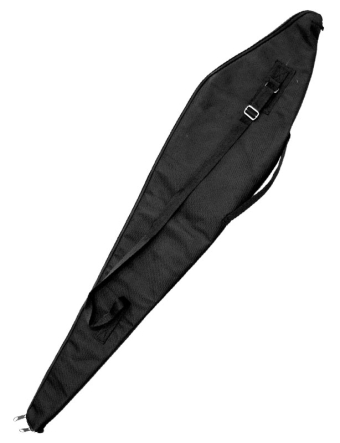 Housse porte-épée, en nylon épais noir, souple, L. 110 cm x l. 27 cm. Fermeture à glissière, matelassée, avec poche sur le devant 25 cm x 17 cm. Bretelle réglable au dos.
