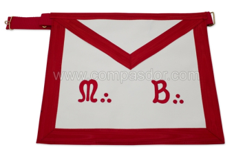 Tablier Maitre rouge, avec poche - M.B. brodé, grand modèle dim 38x32cm