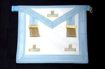 Accueil > Produits > Tabliers > Rite Ecossais Rectifié > Tablier R.E.R. - V.M. - taus bleus et dorés, avec pendeloques