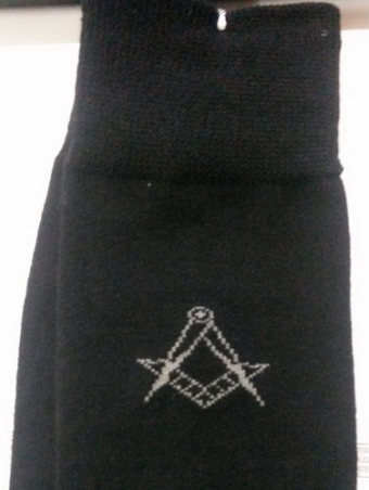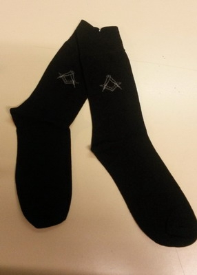 Chaussettes "maçonniques", noires, tissées avec les symboles équerre et compas.