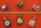 Fiole équerre/compas - petit modèle, en verre et étain, hauteur 45mm env., différents coloris à préciser
