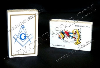 Jeu de cartes maçonniques - modèle équerre/compas, 54 cartes