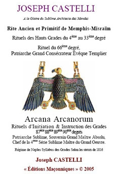 Accueil > Produits > Livres - CD > > Rite Ancien et Primitif de Memphis-Misraïm du 4ème au 90ème degré (Joseph CASTELLI)